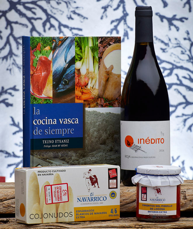 - Y como broche final, el libro "La cocina vasca de siempre" de Txuno Etxaniz. Este libro contiene más de 700 recetas tradicionales, si conoces a algún cocinillas , ¡esta cesta le encantará! Es ideal para los amantes de la gastronomía vasca y sus productos