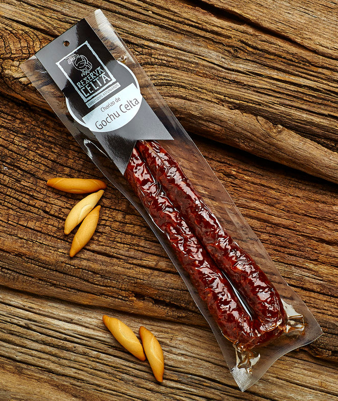 El Chorizo de Cerdo Celta está hecho artesanalmente con ingredientes únicamente del propio animal, así se puede apreciar su sabor característico y la calidad del producto.