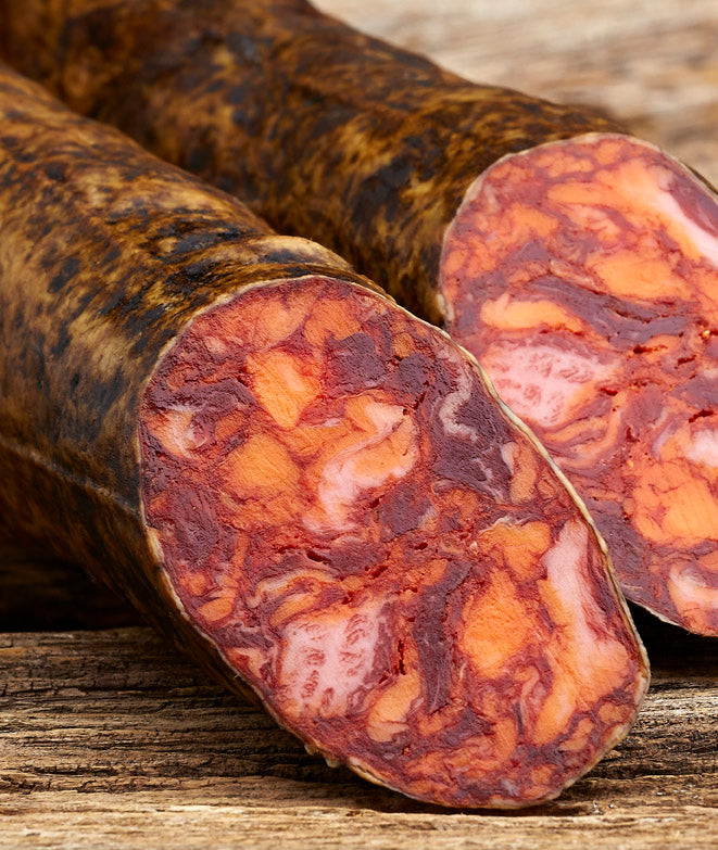 Nuestro popular Chorizo 100% Ibérico de Campaña, envasado al vacío para una óptima conservación.
