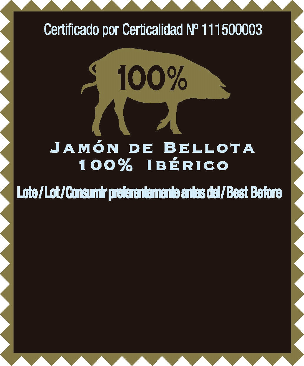 Jamón 100% Ibérico de Bellota 5Js, el auténtico "Pata Negra", una delicia para los sentidos llegado directamente de Jabugo.