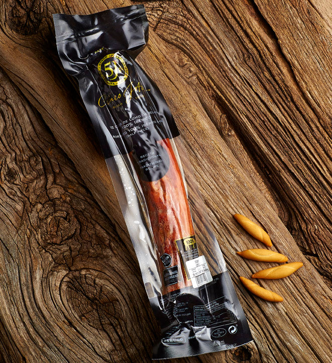 Para los amantes del lomo, una exquisitez, Caña de Lomo 100% Ibérico de Bellota 5Js, envasado al vacío para una óptima conservación.