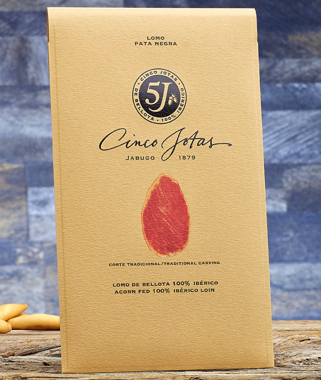 El mejor lomo 100% Ibérico de Bellota 5Js, una auténtica maravilla, envasado en bodega al vacío para una óptima conservación y con un formato muy elegante para hacer un regalo.