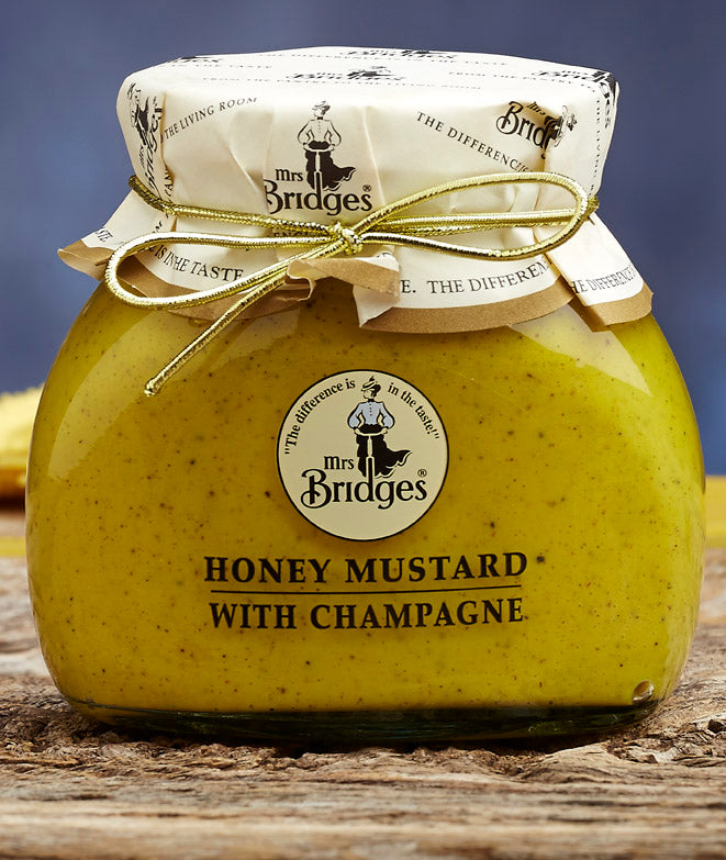 Mrs. Bridges nos trae esta deliciosa Mostaza con Champagne y con ese toque especial que le aporta la dulzura de la miel. Un sabor muy especial para acompañar tus platos de manera diferente.